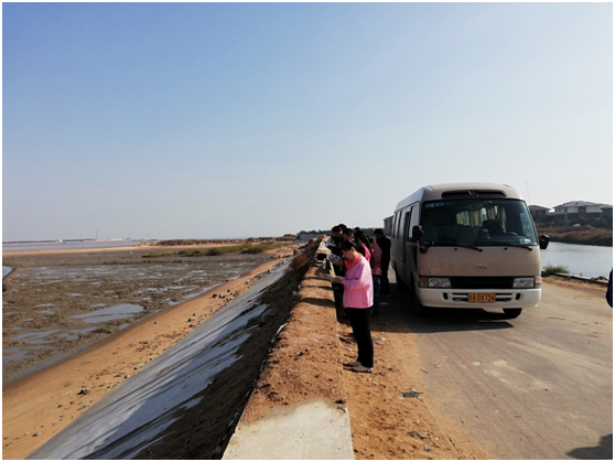 歲在初冬,陽光下的海風(fēng)仍然是溫和的,灘地上的白鸛、灰鶴們在悠閑地覓食,岸邊正有一群人在仔細(xì)觀察著它們,一旁還停著一輛北京牌照的中巴車,這些人是誰呢?